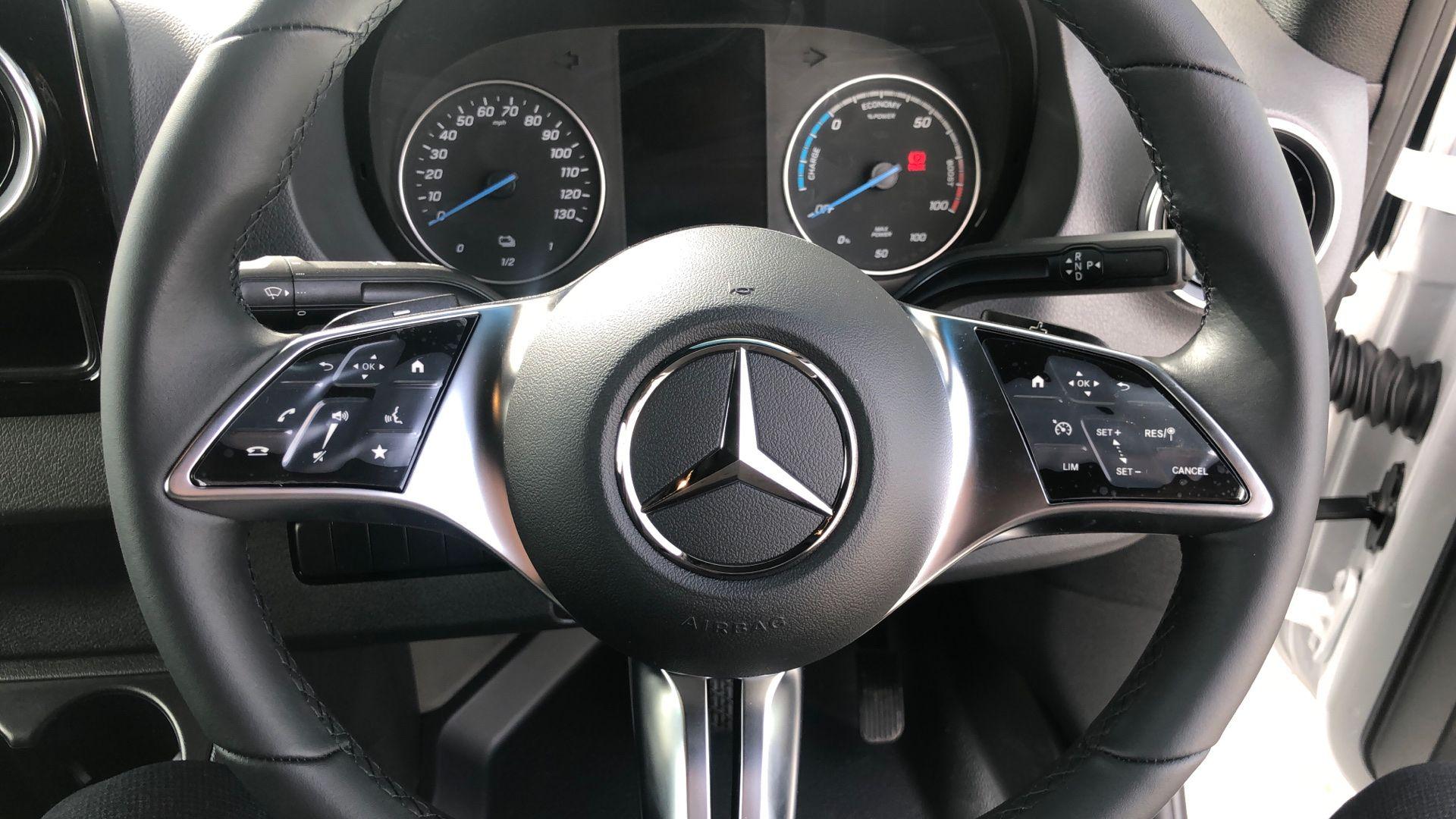 Featuring both AC and DC rapid charging capability, the eSprinter allows for flexible and convenient charging solutions, making it ideal for busy working days and longer routes. Inside, air conditioning keeps the cabin comfortable in all seasons, while the reversing camera makes manoeuvring and parking safer and easier, particularly in tight spaces.