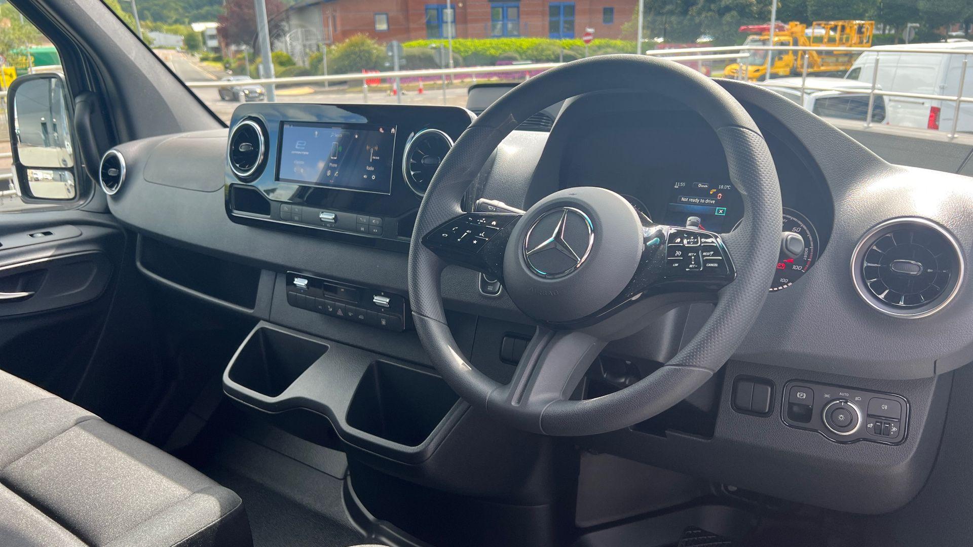 The new-all electric Mercedes-Benz eSprinter PRO tenorite grey metallic has arrived at Bell Truck and Van! This 414 offers an electrifying range of up to 273 miles - the larger 113k Wh3 battery can go from 10-80% charge in only 42 minutes. Each new eSprinter owner also benefits from our Premium business support package which gives you priority hotline and access to a workshop within 48 hours, a guarantee that any work required on your van will commence within 4 hours of arriving at our workshop plus we will ensure your van has a minimum charge of at least 30 miles of range when it leaves our workshops. If that isn't enough, your first four services are free as part of our integrated service package. We also continue to provide our three year, unlimited mileage warranty, eight years’ free battery capacity warranty8 and free Europe-wide, 24/7 breakdown and roadside assistance with MobiloVan, including cover if you run out of charge.
