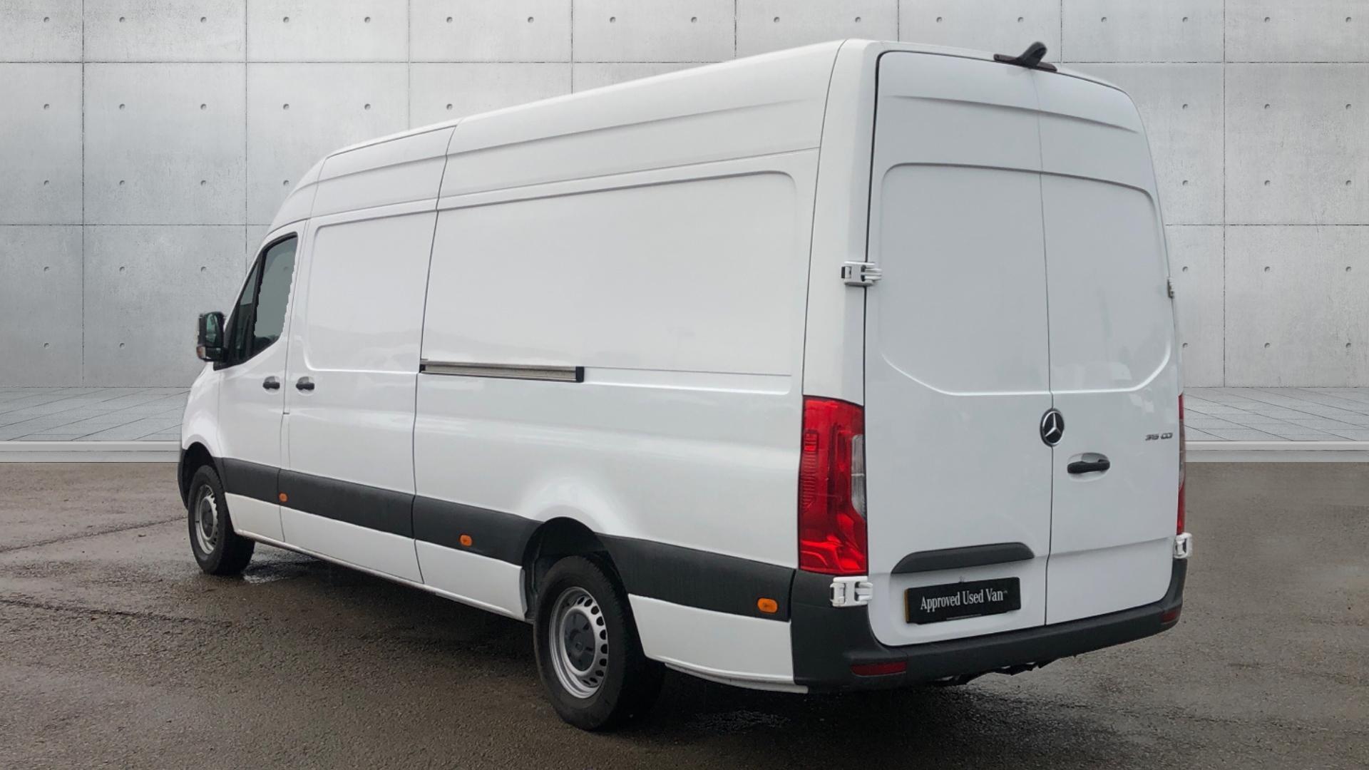 Mercedes-Benz Sprinter 315CDI Progressive Long Van in arctic white. Features rear step, reversing camera, Bluetooth, height and rake adjustable multifunction steering wheel and driver's armrest for the perfect driving position, cruise control, speed limiter, automatic headlights, rain sensor, ply-lining DAB radio, apple car play, android auto and 7 inch multimedia screen. This van also comes with the balance of the manufacturer's three year unlimited mileage warranty Until Sept 2027. Contact us today to book your test drive or video demonstration.